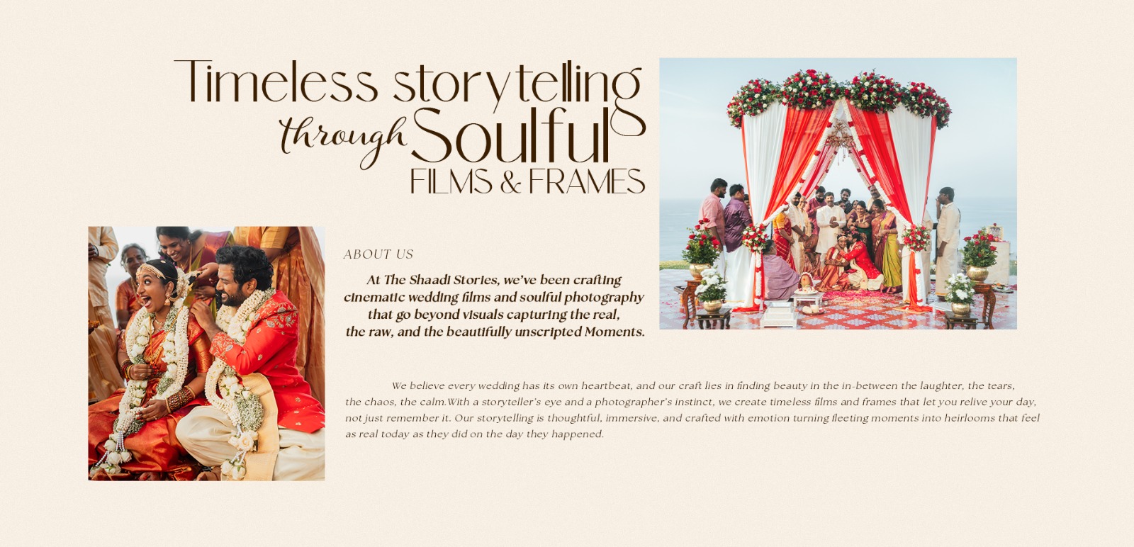 At The Shaadi Stories, we believe that every story deserves to be told with heart, honesty, and intention. we’ve been crafting cinematic wedding films and soulful photography that go beyond visuals — capturing the real, the raw, and the beautifully unscripted Moments.